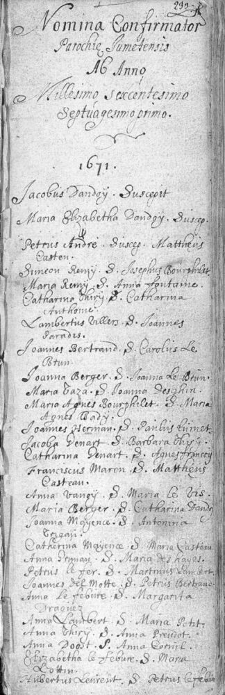 LIST OF CONFIRMS OF JUMET IN 1671 according to the images below